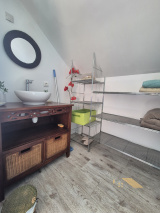 Maison de ville avec terrain clos, deux chambres avec 1 lit de 140 et 2 lits de 90, deux salles d'eau, WC, séjour avec cuisine équipé. Idéal pour des vacances même hors saison, maison confortable au calme d'une ruelle en centre bourg.