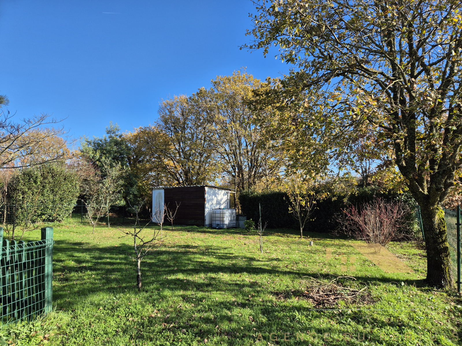 Agréable terrain clos arboré.