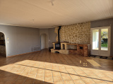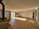 Grande pièce de vie avec poêle à bois Aasgard, cuisine aménagée et équipée ouverte sur séjour, cellier-buanderie - espace studio : pièce avec coin cuisine, salle d'eau, wc - dégagement deservant 4 chambres, wc , salle d'eau.