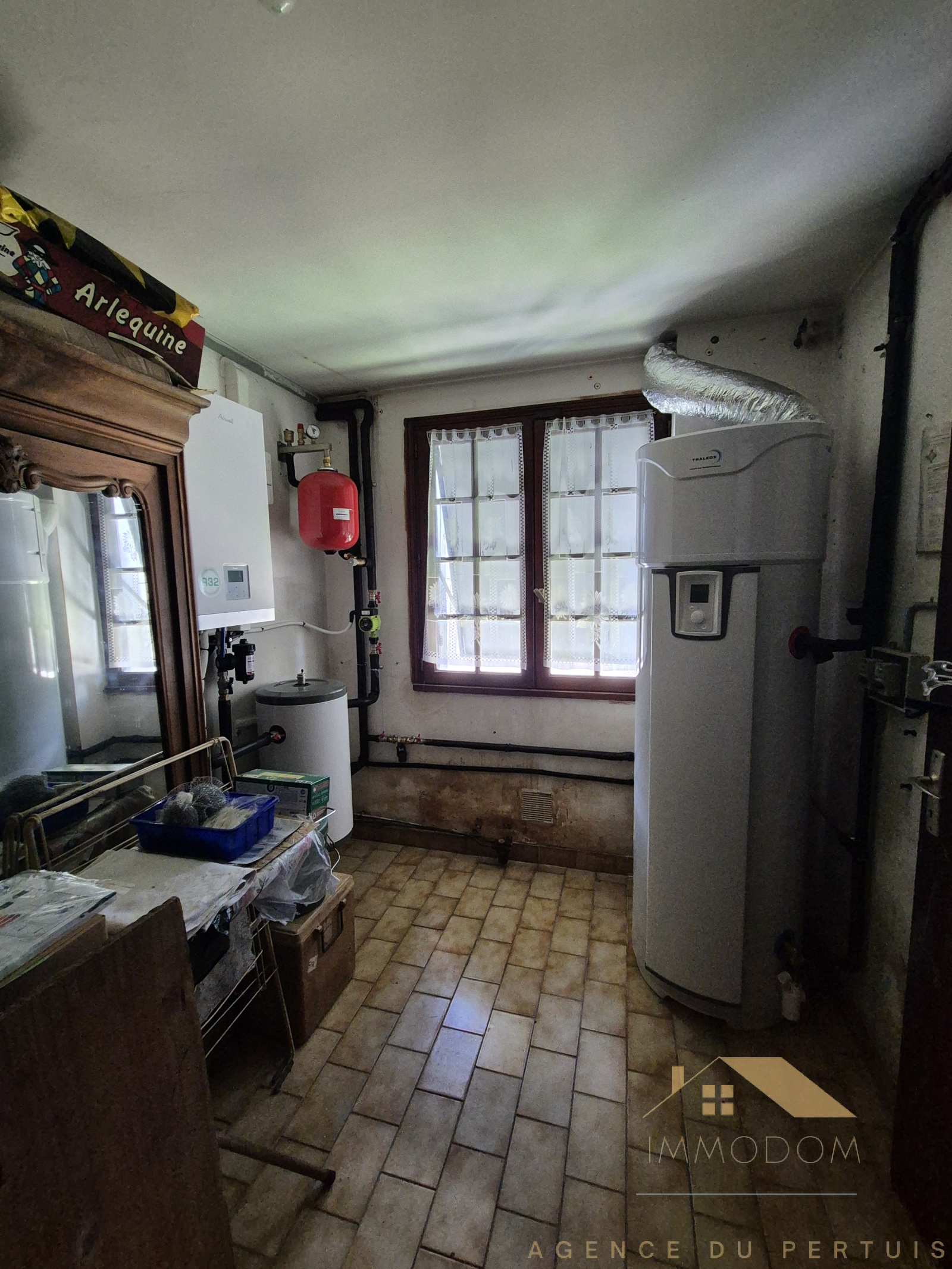 En rez-de-jardin : une 3ème chambre, pièce cellier-buanderie-chaufferie. Garage et Préau. POMPE A CHALEUR NEUVE.