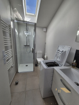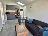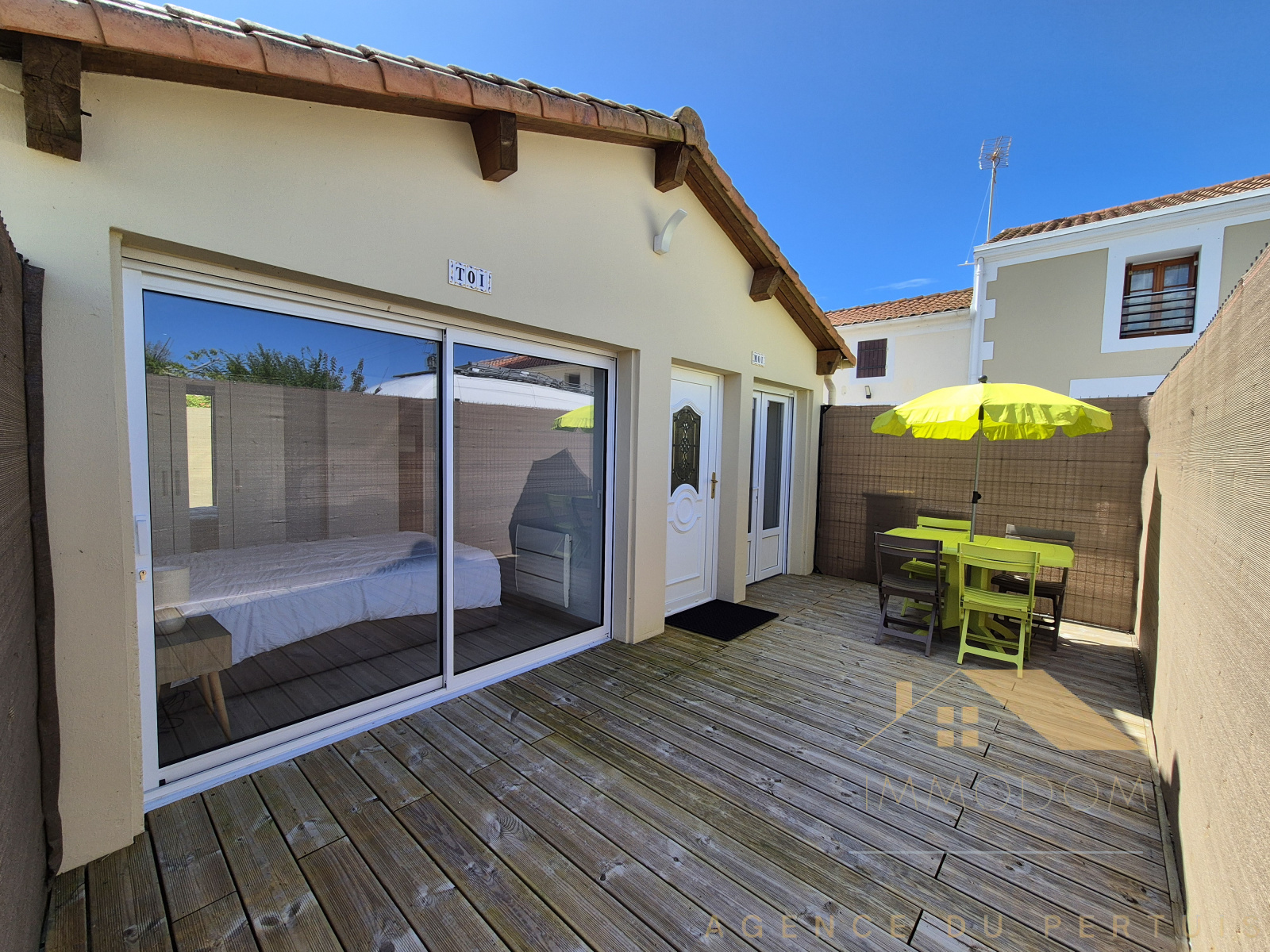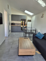 - Second logement de plain-pied avec terrasse : pièce de vie avec cuisine aménagée, salle d'eau et wc, chambre.